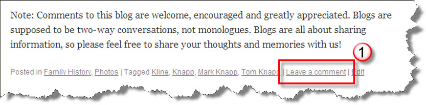 1. Click the Leave a comment link shown below at the end of each post. Click on the thumbnail image (little picture) below if you aren’t sure where it is located.