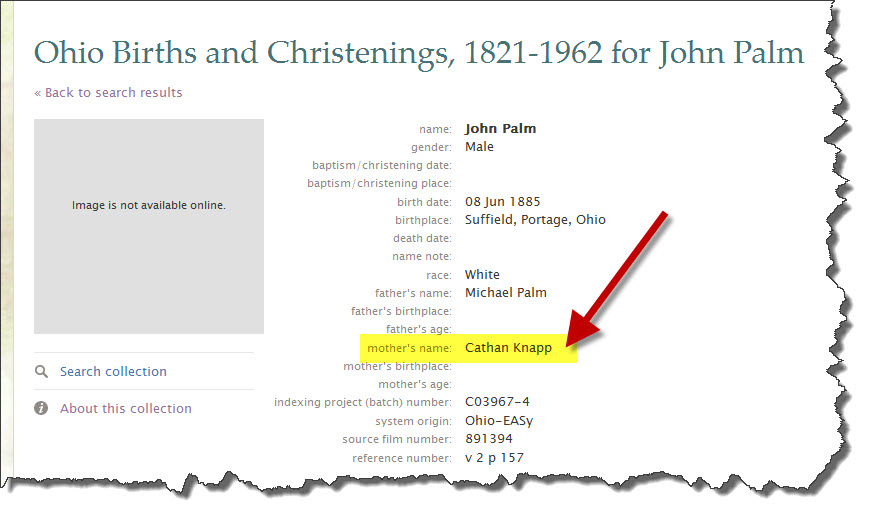 This confirmed that Michael Palm had indeed married a Catherine/Katherine KNAPP. This gets more interesting all the time.