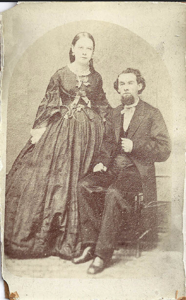 The pose is typical for a wedding photo. The original is probably about 2.5 inches wide and 4 inches tall on a yellowish or tan cardboard. It should have the photographer’s name and place of business on the back (which will help you date and place the photo and determine who the people could be). It may also have a Civil War revenue stamp on the back.