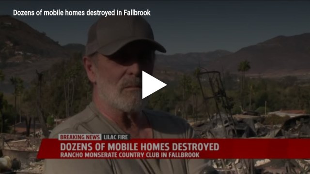 John R. Knapp, son of John P. and Sophie Knapp, narrowly escaped a fast moving wildfire raging through the San Diego area. Yesterday morning he was forced to evacuate his home in Fallbrook, Calif., after a sheriff’s deputy knocked on his door and ordered him to leave when flames got too close to the Rancho Monserate Country Club retirement community where he lives.