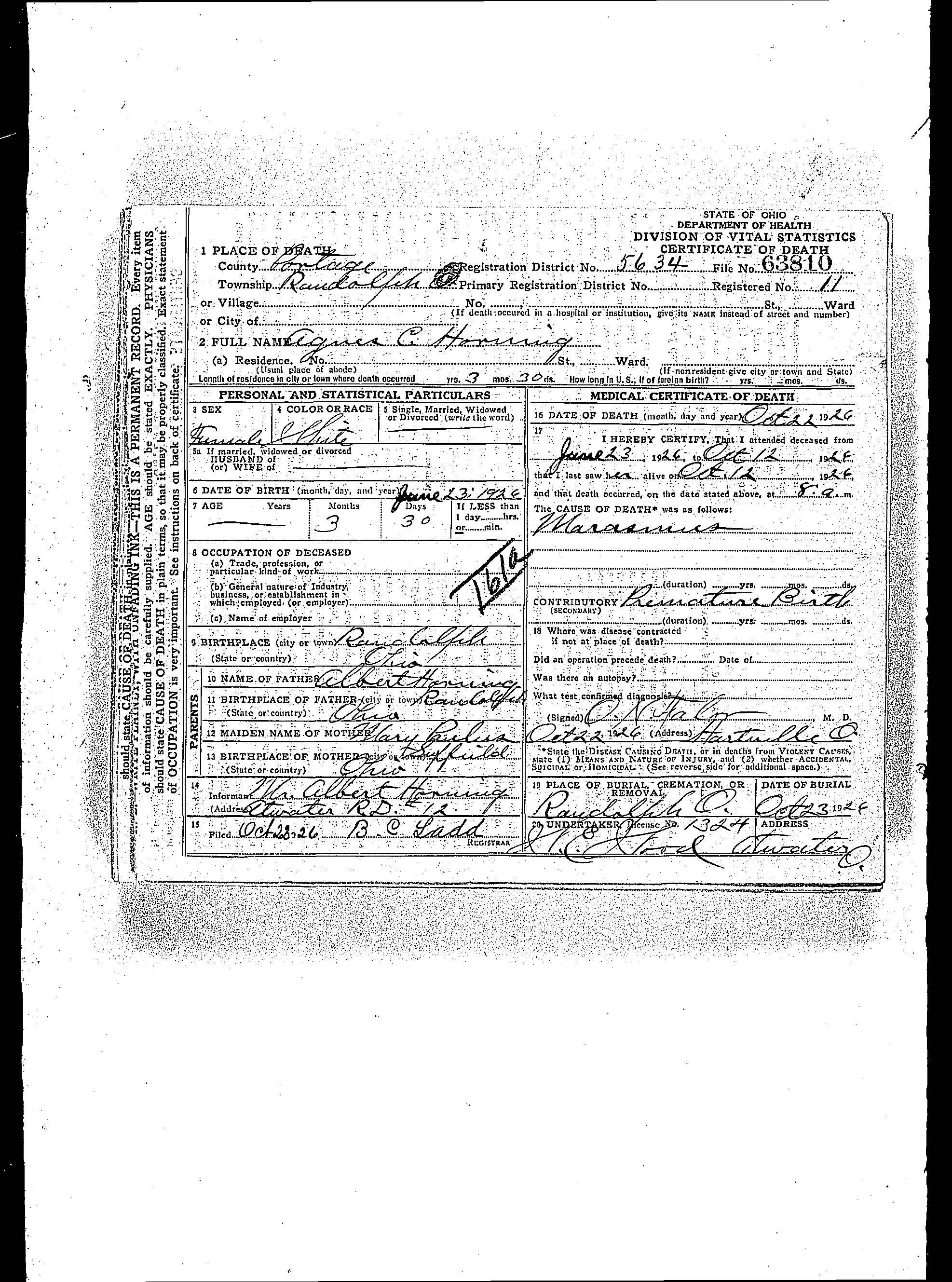 HORNING, Agnes C