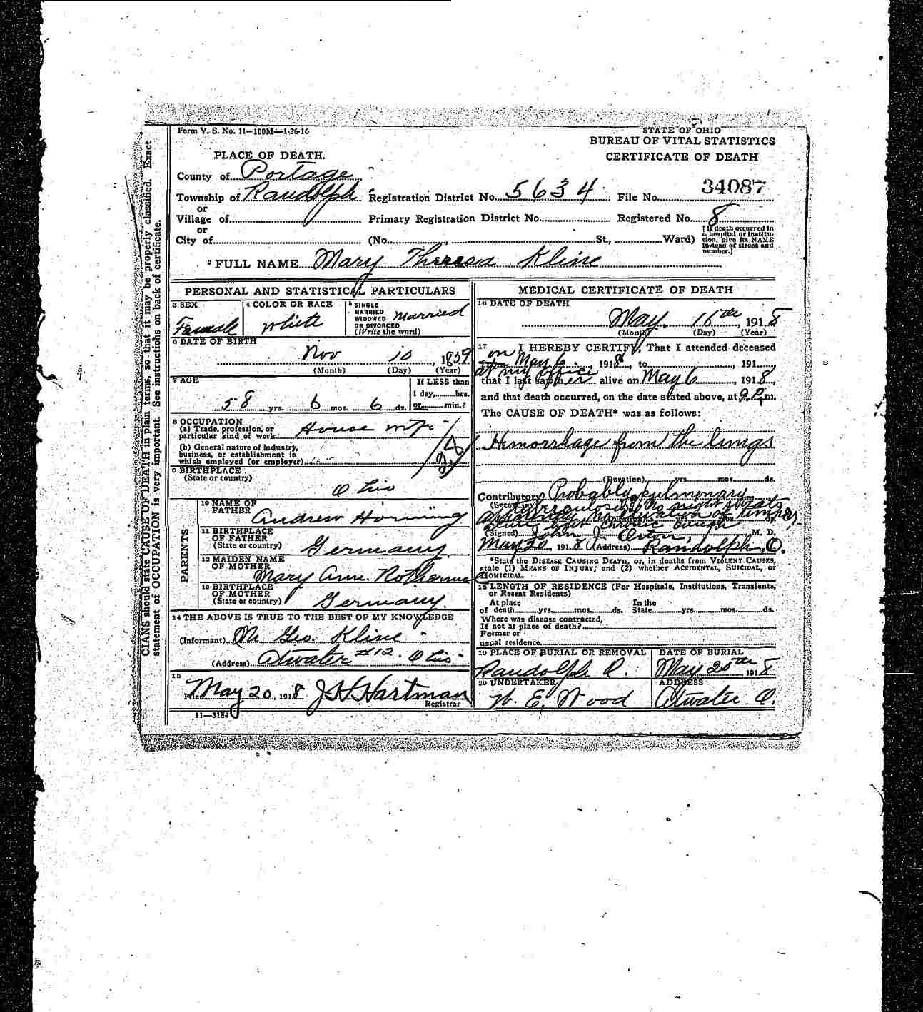 HORNING KLINE, Mary Theresa