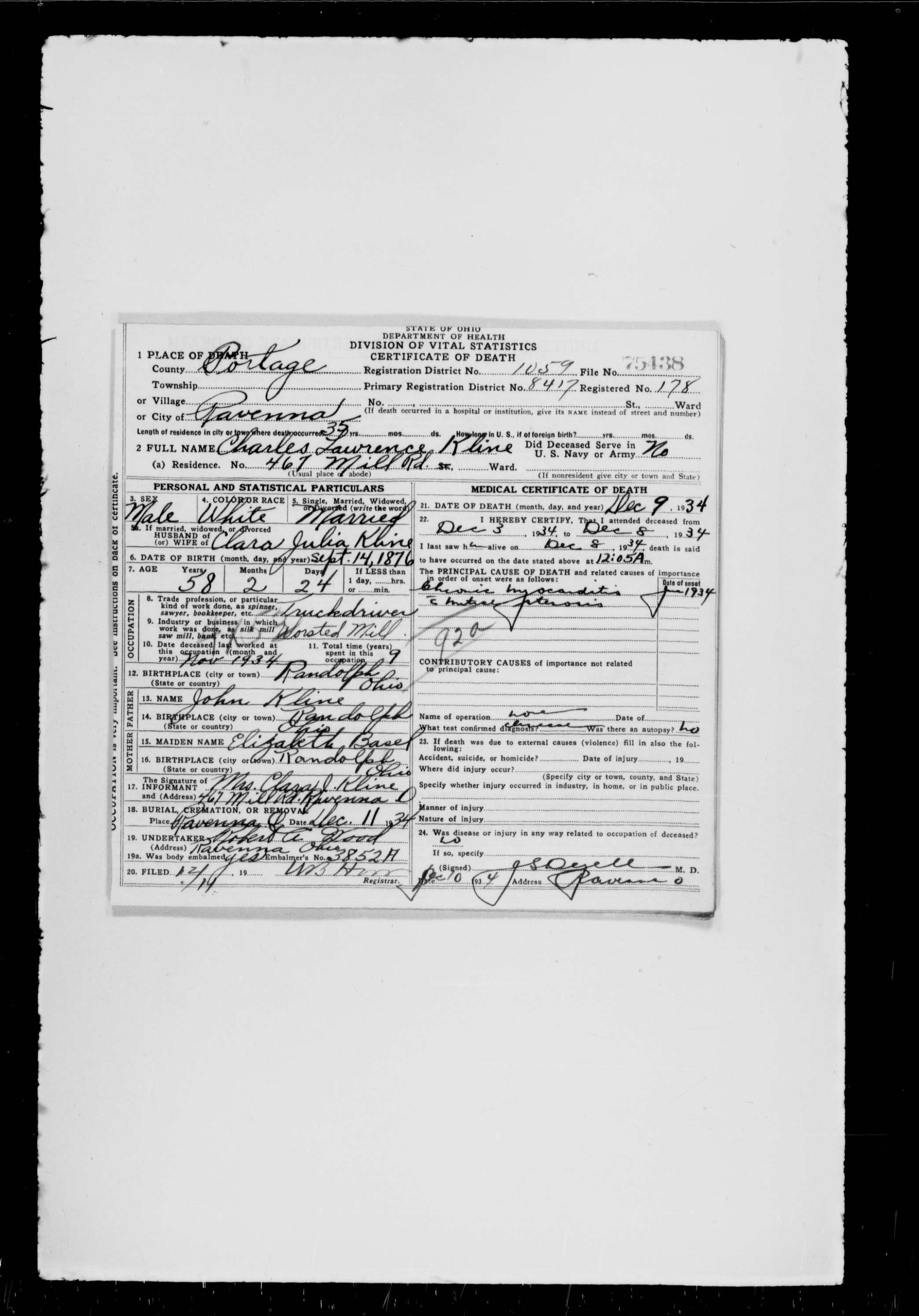 KLINE, Charles Lawrence